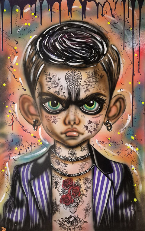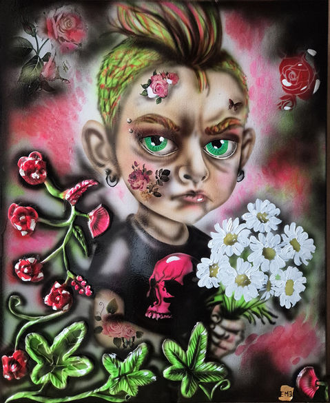 Œuvre unique réalisée à l'aérographe et acrylique.